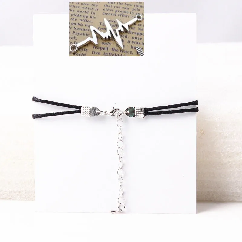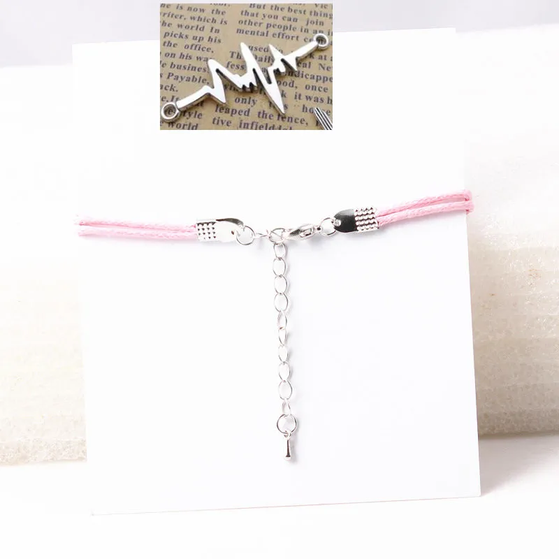- Wave Heart Bracelet Romantic Love Electrocardiogram Charm Bracelet Heartbeat Bracelet Red Cord Wish Card Women Jewelry