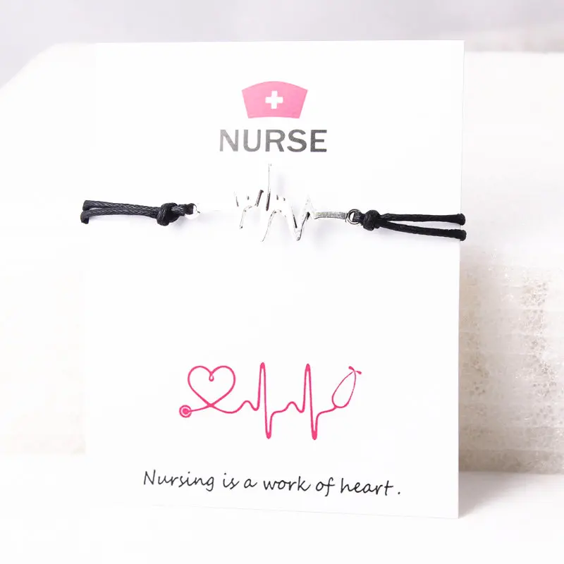Buy Electrocardiogram Charm Bracelet Gift for Doctor Nurse Firefighter Paramedic EMT Medical Gift Adjus | Wave Heart Bracelet Romantic Love Electrocardiogram Charm Bracelet Heartbeat Bracelet Red Cord Wish Card Women Jewelry