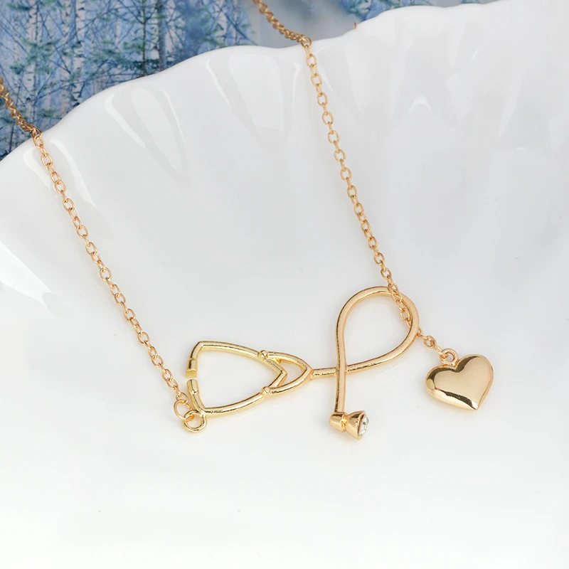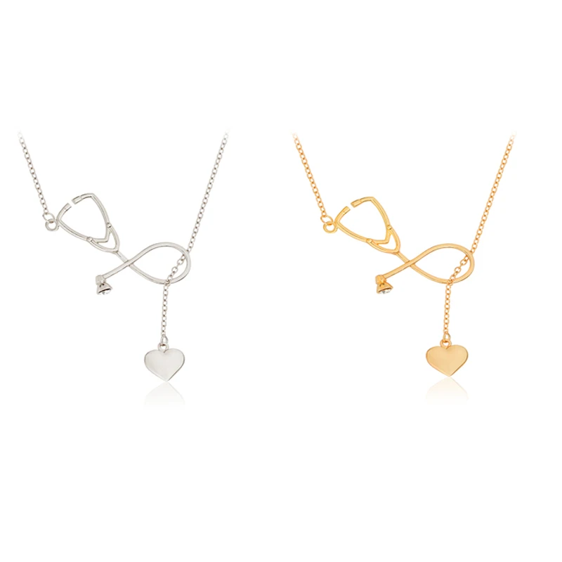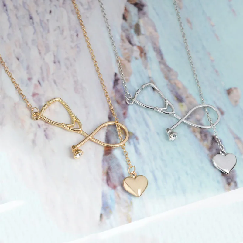 Refurbished Creative Gold Silver Nurse Heart Stethoscope Necklace Nursing Jewelry Medicine Graduation Decoratio